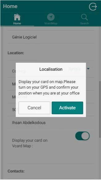 Virtual Card is your mobile application that allows you to create a professional business card and according to the standards in a very simple way in few minutes and for free. This allows other users of the application to find all your contact information and your address and your location will be clearly displayed in the map VcardMap. VCard is available in both English and French language version and the configuration is done automatically according to the configuration of your smart-phone.