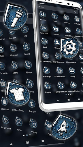 Water Drop Dark Launcher Theme provides delicate app icons, wallpapers, folder and app drawer interface. Get it right now and have a completely new makeover of your Android smartphone.
