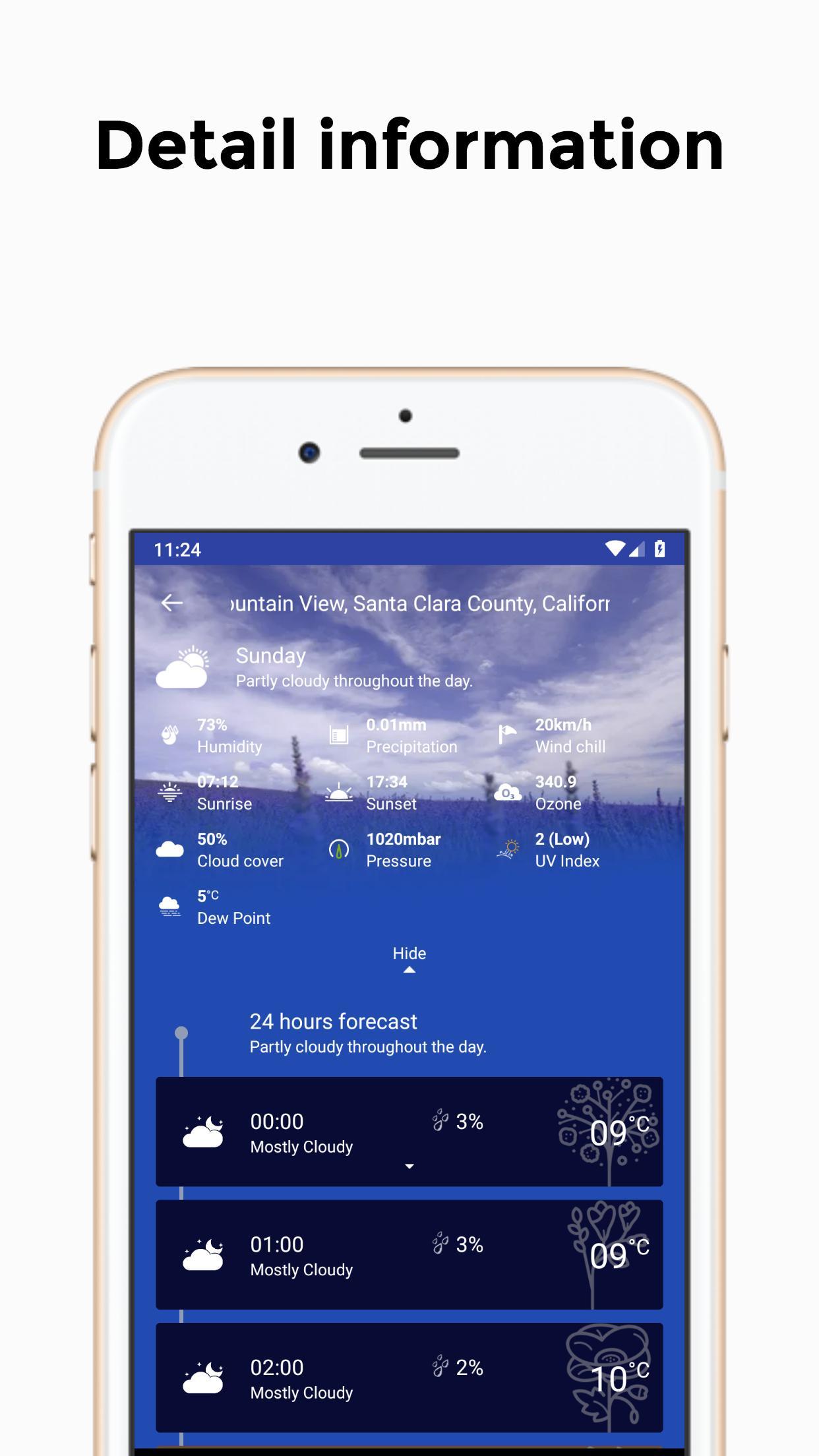 - Have weather forecast charts in a week: temperature, precipitation, pressure, wind, humidity, dew point