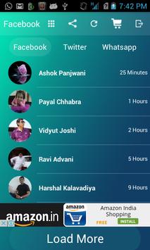 You can see list of people from your facebook, twitter, and whatsapp. Now you can check who views my facebook profile. Whats app profile Visitors and who views my twitter profile.