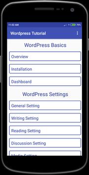Wordpress Tutorial app collections of Categories are below and provide all this Topic Like,