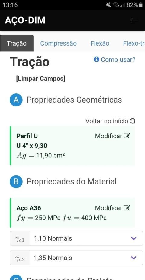 Dimensiona diversos perfis de estrutura metálica.