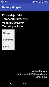 Widgets with information about battery percentage and temperature