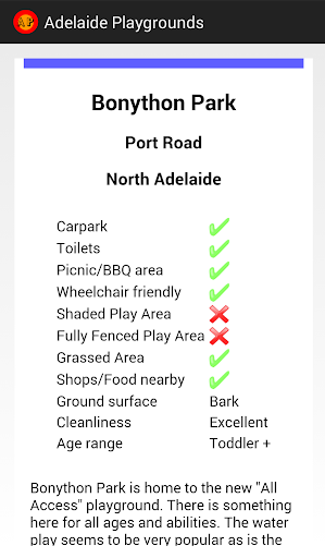 Your easy guide to playgrounds in Adelaide and around South Australia. If you are a local or a visitor to Adelaide or South Australia, this app will help you find the best places to take your kids on a fun day out to the park. Our easy guide makes light work for parents, grandparents and carers to see what facilities a park has on offer. All our playgrounds have been personally visited and reviewed by the creator of this app. Adelaide Playgrounds is the original place to find playgrounds specifically in Adelaide and South Australia. We hope you find this app helpful. If you do find an error, please email us so we can correct it. Thank you.