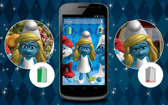 Watch Smurfette spin on your home screen in a stunning 3D animation and pay close attention to her attitude: she’ll update you on the battery level of your phone or tablet. She will be very energetic when your battery is fully loaded, but she will look really tired when you need to recharge your device.