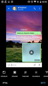 GİZLİLİK: Gizli Sohbet sayesinde kendini yok eden mesajlar gönderebilir böylece karşı taraf mesajınızı gördükten sizin belirlediğiniz bir süre sonra mesajınızın her iki taraftan da silinmesini sağlayabilirsiniz. Gizli Sohbet mesajları şifrelenerek gönderilir ve sizden ve tarşı taraftan başkası tarafından görülemez.