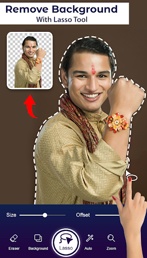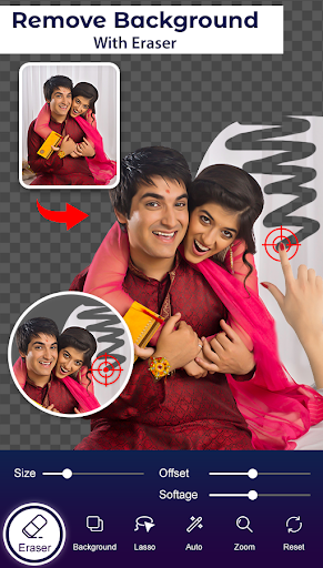 Raksha Bandhan photo editor has background erase option. It helps you to remove background of your photos. Eraser size can be adjusted. Make its size small or big. Use Zoom in & zoom out option to erase carefully without erasing the main picture.