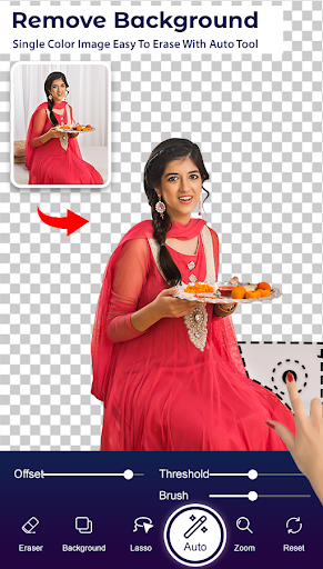 This photo editor has auto background eraser. It will help you to remove particular pixels from the background in single touch.