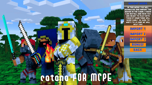 ❗Katana para sa Ninja mod para sa Minecraft Pe❗😋 ay magdagdag ng isang kahanga -hangang addon.Magkakaroon ka ng isang mahusay na pagkakataon upang pag -iba -ibahin ang iyong laro ng MCPE magpakailanman na may hindi kapani -paniwala na mga texture at tampok ng satanas ng satanng aming Katana anime.Ito ang napag -usapan namin sa itaas.Ngunit hindi ito ang karaniwang karagdagan na nagdaragdag ng mga kamangha -manghang mga hayop, mga bagong lokasyon o props, ngunit natatanging mga mod.Maaari mong i -download ang palaging na -update na Catana Mod para sa Minecraft Pocket Edition 2022! 🤣😀Ang mga addon para sa Minecraft ay gagawing mas kawili -wili ang iyong laro, ang mga bagong item, hayop at monsters ay lilitaw sa loob nito.Mayroon kaming mga addon para sa mga mobs at monsters, isang armas mod para sa pagtalo sa mga kaaway, isang addon para sa mga kotse at eroplano para sa paglalakbay sa buong mundo, isang teknikal na addon para sa mga mahilig sa mga mekanismo, isang addon para sa mahika para sa mga nagmamahal sa hindi kilalang at maraming iba pang mga cool na addon.Ang pinakamahusay na mga mod para sa MCPE.Bersyon ng Minecraft PE at palaging na -update!ng isang mapa, mods o skin!Ang pangalan, trademark at mga ari -arian ay pag -aari ng may -ari na Mojang AB.Ang application ay tumutulong upang mai-install at pamilyar ang iyong sarili sa mod para sa laro ng Minecraft, hindi ito isang laro, ngunit isang add-on na may mga tagubilin!Kung naniniwala ka na may mga paglabag sa trademark na hindi nahuhulog sa ilalim ng & quot; patas na paggamit & quot;Mga Alituntunin, mangyaring makipag -ugnay sa amin sa pamamagitan ng email.