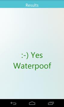 The app will tell you the model of the phone. Then by clicking results it will tell you if it is waterproof or not.