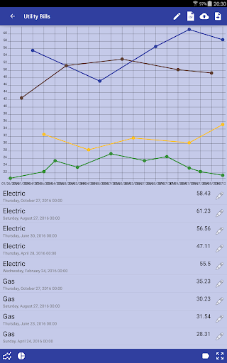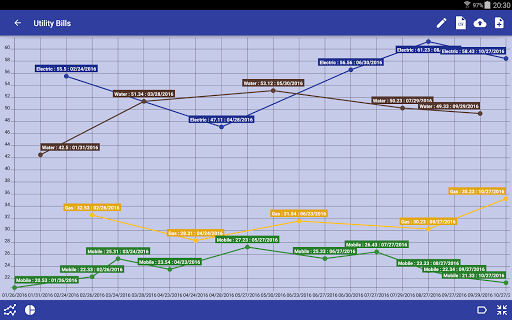 - Mga listahan ng graphics: Idinisenyo upang pamahalaan, halimbawa, subaybayan ang mga invoice sa serbisyo sa bahay (liwanag, tubig, gas,. ..), timbang Kontrol, kontrol ng diyabetis, ...