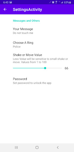 A big noise will be heard if someone touch your phone while anti-thief alarm is running.