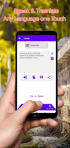 Kasama ang voice Translator maaari mong gamitin ang pagsasalita sa text upang i-convert ang iyong pagsasalita sa teksto. Magsalita sa aming at gumawa ng mga tala ng boses o teksto. Sa pagsasalita sa teksto maaari kang gumawa ng mga tala upang gamitin ang mga ito sa hinaharap. I-save ang iyong mga tala ng boses sa format ng boses o teksto. Ibahagi ang mga ito sa iyong mga kaibigan habang naglalakbay.