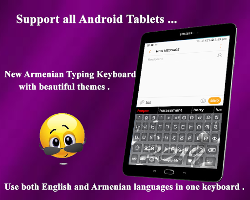 Armenian Keyboard App kasama ang kapaki-pakinabang na pag-andar para sa iyo lamang. Sa Armenian language keyboard makikita mo ang maraming mga kahanga-hangang tema sa pamamagitan ng paggamit na ito maaari mong i-customize ang iyong keyboard. Ang Armenian Typing App ay magbibigay-daan sa iyo upang baguhin ang estilo ng font at sa wakas ay may iba't ibang wika ayon sa iyong pangangailangan. Kailangan mong makuha ang bagong Armenian keyboard 2019 ngayon dahil dito tiyak ang isa sa mga armenian pagta-type keyboard na may maraming mga hindi kapani-paniwala mga tampok. Ang Armenian Keyboard app ay libre para sa mga gumagamit ng Android upang i-type ang mabilis at madali sa pinakamahusay na hula ng salita ng Armenian, higit sa 1000 emoji at emoticon, smartest auto-pagwawasto. Ang Armenian Keyboard ay isa sa mga pinakamahusay na mabilis na pag-type ng mga keyboard para sa Android.