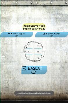 WiFi and your data connection turns on or off an hour of your choice.Timer