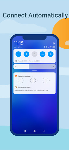- Nagpapakita ng abiso na may katayuan ng airpods kapag sila ay konektado.