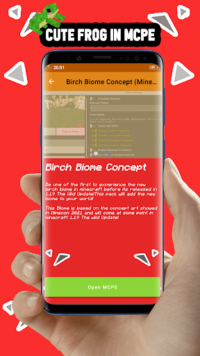 Start your adventure with this animals mod, if you only meet normal animals or mobs in mcpe like wolves, sheep, parrots, dogs and pigs, then here you can find beautiful amphibians, namely FROG! frog mod for mcpe Here in addition to the animals pack, you will be given skins for boys and skins for girls that which you can choose to use with the crazy frog skin which is very cute, with the frog skin for minecraft you can blend with nature and other frogs.