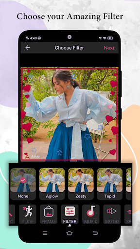 "Ang tagagawa ng katayuan ng video ng mga larawan na may musika" ay malakas na paggawa ng video app. Maaari mong piliin ang iyong mga paboritong larawan at musika upang lumikha ng mga video na may mga espesyal na effect at iba't ibang mga filter. Sa tool na ito ng pro video maaari mong gamitin ang iba't ibang mga frame na angkop para sa iba't ibang okasyon tulad ng kaarawan, Araw ng mga Puso, Pasko, Halloween, Anibersaryo atbp.