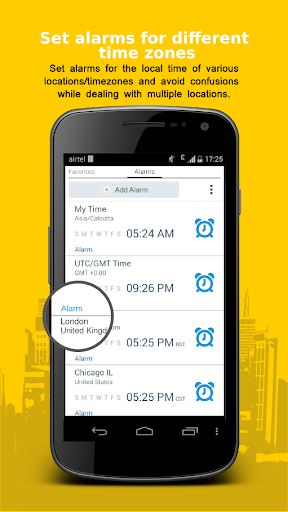 Mayroon din itong pasilidad ng alarma na nagbibigay-daan sa iyong itakda ang mga alarma para sa lokal na oras ng anumang lokasyon / time zone sa mundo.