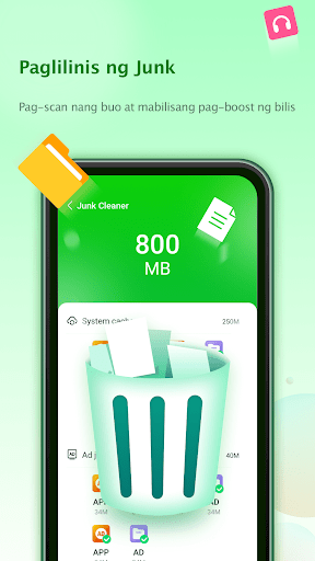 Paglilinis ng Junk: nag-aalis ng junk sa memorya ng iyong telepono, nagsasagawa ng masusing paglilinis, nagpapakawala ng RAM, inooptimisa ang paggamit ng RAM
