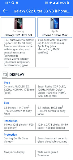 Kapag pinili mo ang anumang telepono upang makita ang mga detalye nito, ipapakita ng app na ito ang lahat ng telepono na iyon.Ang bawat isa at bawat solong detalye ay ipinapakita.Tulad ng, kung aling processor o kung anong uri ng RAM ang ginagamit.Gaano kalakas ang camera, anong uri ng pagpapakita ang ginagamit.Gayundin sa kung anong bansa kung anong kulay ng teleponong iyon ang magagamit, o kung ano ang presyo ng telepono sa iba't ibang mga bansa.Sa tabi ng lahat ng ito, tinitiyak namin na ang data ay ipinapakita sa ikinategorya na layout.Naglalaman din ito ng mga icon at larawan ng telepono upang magbigay ng isang buong pananaw.