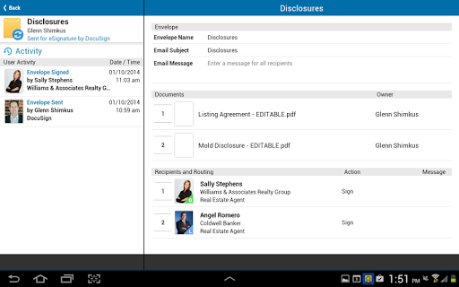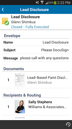 • Monitor the status of your envelopes and receive notifications when parties have signed and when your envelope is complete.