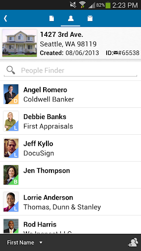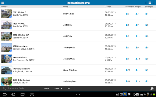 View a listing of all of the people you are connected to via Rooms for Real Estate. You can also quickly access their contact information and a listing of all the transactions you share in common, invite contacts to a transaction, or join their room.