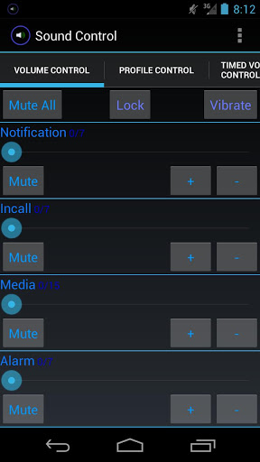 Please use the built in contact dev feature or contact me through the market to let me know of any issues or ideas. I can39;t fix things or add things if no one lets me know.This app has been redesigned from the ground up to provide a cleaner, quicker, and more advanced control of your device. A part of this redesign is an action bar allowing easier access to main features. This app now simplifies profile control into a simpler list form. This not only cleans up the UI, it also allows for as many profiles as required by the user with no limit of 10 like before. The time control and location control are designed similarly.Another part of the redesign is the new out of app profile controls. The profile widget has been redesigned to allow for greater customization including transparency and to better support resizing. The widget can be set up to not only have the ability to toggle the volume lock but also have the ability to launch the app. The notification widgetonly supported on some devices is handled similarly but designed to match other notifications better.I have added many libraries others have made to allow for a consistent UI across devices. This include ActionBarShelock and HoloEveryWhereLib. Note: I did not create the libraries and am just using the great work of others. On this note, I have changed the app so the only difference between the paid and free version is The ability to turn ads off and on the paid version they always default off.I have removed the custom images I have used in the past. This means everything that can be colored, is done so via an ARGB system meaning a leaner front end. The app size is larger because of the libraries.Volume triggers are another important addition. The triggers allow either a specific profile or the lock to go off based on system events like airplane mode being toggled, a charger being pluggedunplugged, and more.backup and Restore provides insurance in case you uninstall this app by accident or you switch Custom ROMs frequentlyThe new Backup and Restore system does not support the old version. The time control system has been redesigned to be triggered at a specific time of day and can be set on repeating intervals. The location control is a quick way to control your volume without having to do anything. The accuracy can be controlled making the location control either require a close accuracy or a much broader area for the trigger to happenthe lower the slider, the greater the accuracy required.Permissions: android.permission.MODIFYAUDIOSETTINGS, Used to modify audio setting as defined by user in app.android.permission.WRITESETTINGS,Used for Ringtone management and other controlsandroid.permission.ACCESSFINELOCATION, Used by Location Controlandroid.permission.INTERNET, Used by ads only.android.permission.ACCESSNETWORKSTATE, Used by ads and the airplane mode trigger.android.permission.WRITEEXTERNALSTORAGE, Used for the backuprestore features.android.permission.RECEIVEBOOTCOMPLETED, Used to start services that were on prior to shutdownwidget updater, Location Control are examples.android.permission.READPHONESTATE, used to listen for phone calls to change volume levels when phone is unlinked from notification.Things to note:App2SD support is in this app, but the widget requires being on internal memory This is due to android and there is nothing I can do to fix it.This app only supports Android 2.1 and up. This was done to provide a newer cleaner interface. The app should now look the same on any device that is Android 2.1 and up.The notification profile control is different depending on you device. 4.0 and up has a simplified version of the profile widget and works similarly. Every other version of Android puts up a single profile for quick access.If you have questions or comments please email me through the contact dev option built in and I will get back to you as soon as I can.
