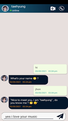 Taehyung Pekeng tawag Ito Isang prank at hindi isang opisyal na app, para lamang sa entertainment at para lamang sa joke, ito ay isang 100% pekeng at kathang-isip na kunwa para lamang sa kalokohanang iyong mga kaibigan .