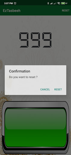 Ang digital tasbeeh counter ay may malaking counter button na makakatulong sa iyo upang mabilang ang Tasbeeh madali. Ang pindutan ng counter na ito ay pumupuno sa mas mababang kalahati ng screen. Maaari mo ring gamitin ito bilang isang tally counter.