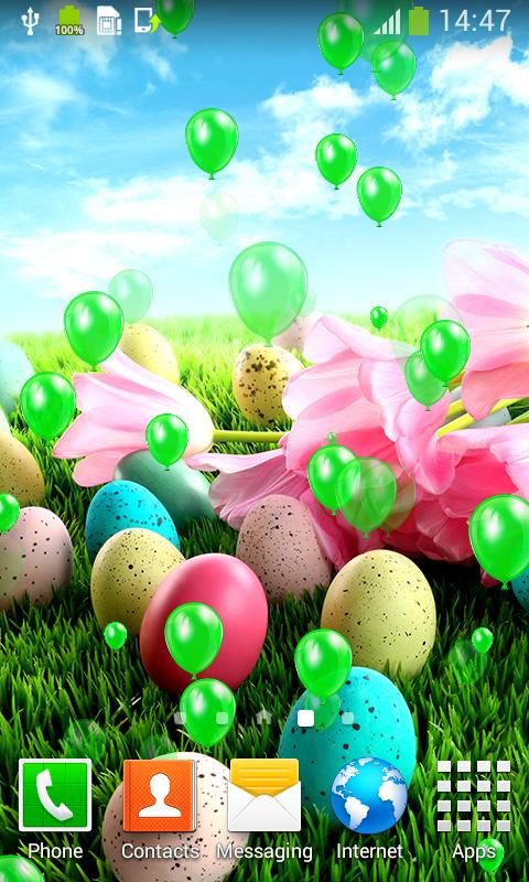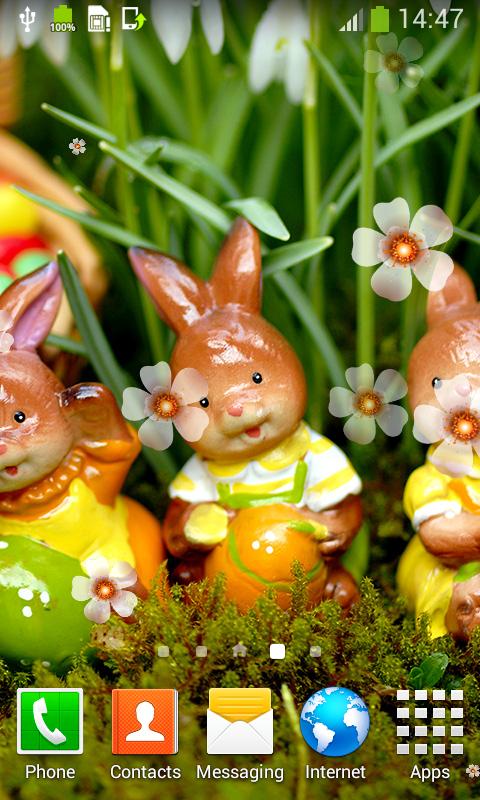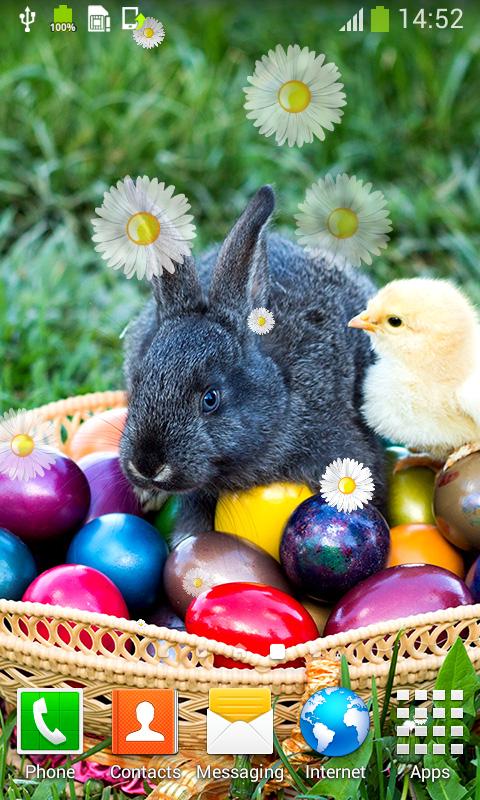 Easter has come and you want to decorate your screen to reflect this jovial atmosphere. There is no need to search further because with the top Easter Live Wallpapers you will be able to browse between the most magnificent photos of painted eggs. The cute little bunny is there to keep you company and make you cheerful and joyous. This is the best time to spend it with your family and friends. Prepare a delicious meal and invite them over. Organize egg hunting and have tons of fun. Prepare the prizes for children who gather the largest number of eggs. A chocolate bunny will be a perfect present which all would love. You will almost laugh your head out of happiness. When the end of the evening approaches you could have the very popular egg tapping and check out who is going to win. This is so interesting for both kids and grown ups. You would not know when it is enough. Keep all this festive mood always with you by downloading for free the newest Easter Live Wallpapers app. If you select the photo of happy bunnies surrounded with the lovely snowdrops, they will always announce this wonderful festivity, just like appearance of this flower tells you that spring is coming. But, this is not all! Your smartphon or tablet can be so much improved with setting some cool moving objects. We prepared fifteen various among you can take your pick. You can set different one every day. No matter if you select green leaves or downy tufts to slide all over your screen you will definitely be blown away by its beauty.