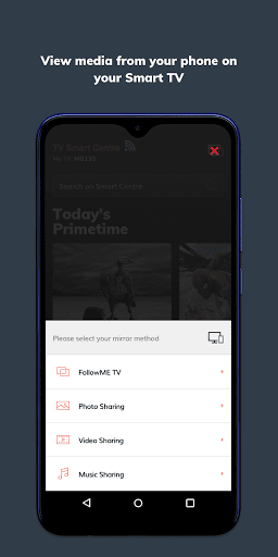 Tangkilikin ang kaginhawahan ng madaling kontrolin ang iyong TV mula sa iyong smartphone gamit ang renewed interface ng app. Sa tulong ng TV Smart Center, ang impormasyon tungkol sa programa ng pagsasahimpapawid at mga detalye ng programa ay palaging nasa kamay. Maaari mong i-record ang mga programang broadcast upang panoorin sa ibang pagkakataon (*), magtakda ng mga paalala para sa mga programa, at magbahagi ng nilalaman sa iyong mobile phone gamit ang iyong TV.