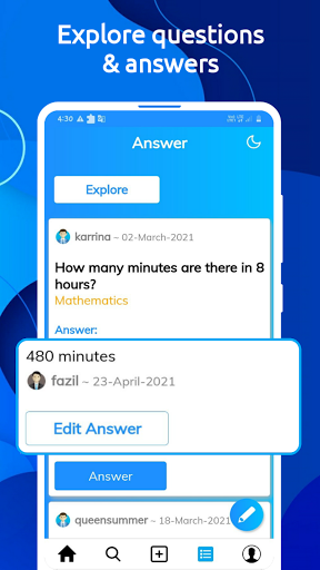 Ang sagot ay isang simpleng Q & A platform. Ito ay isang simple at pinakamahusay na mga katanungan at sagot app. Ito ay espesyal na dinisenyo para sa mga nag-aaral at mga mag-aaral, na maaaring magtanong sa kanilang mga pagdududa at malutas ang mga pagdududa ng iba. Kaya, matutulungan mo ang iba sa kanilang araling-bahay. Maaari mo ring tanungin ang iyong mga pagdududa. Magtanong ng mga pagdududa sa app na ito. Ang sagot ay ang pinakamahusay na pagdududa paglutas at pag-aalis ng paglilinis ng app. Tinatawag din ito bilang tanong ng magtanong, magtanong ng mga sagot app. Ito ang pinakamahusay na pagdududa sa paglutas ng app para sa mga mag-aaral. Kung gusto mo ng ilang tulong sa iyong araling-bahay, maaari mong tanungin ang tanong na ito sa app na ito. Kung alam ng isang tao ang sagot para sa tanong na iyon, tinutulungan ka nila sa pamamagitan ng pagbibigay ng sagot niya. Maaari mo ring gastusin ang ilan sa iyong oras sa galugarin ang tampok, na nagbibigay ng pinakamahusay na mga tanong na nalutas. Kaya, matututunan mo ang bago mula sa na. Sa pamamagitan ng paggamit ng app ng sagot, maaari mong gastusin ang iyong oras sa mabuti at kapaki-pakinabang na paraan.