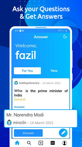 sagot ay ang libreng app na nagbibigay-daan sa mga gumagamit na humingi ng mga pagdududa . Magtanong ng mga tanong at sagot app ay libre na ngayon. Ang sagot ay napakadaling gamitin at may mas mahusay na interface ng gumagamit. Isa lamang-click upang tanungin ang iyong tanong sa kani-kanilang kategorya. Ito ay mas madaling gamitin ng user. Maaari mong gamitin ang aming tampok sa paghahanap upang maghanap ng mga tanong, na nasagot dati. Kaya, maaari mong makuha ang mga sagot mula sa na. Narito ang pinakamahusay na tanong at sagot na app. I-download ito nang mabilis.