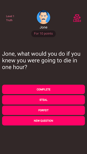 Ang tanging app na magagamit upang magkaroon ng higit sa 4000 mga tanong para sa mga katotohanan at dares. Ang larong ito ay may 4 na iba't ibang mga antas upang masiyahan at mapahusay ang iyong mga pangangailangan! Ang aming mga tanong ay ginawa sa lahat ng panlasa. Hindi na kailangang maging konektado sa anumang network. Pinapanatili namin ang laro hanggang sa petsa at sariwa sa lahat ng oras sa pamamagitan ng pagdaragdag ng mga bagong tanong at mainit na dares!