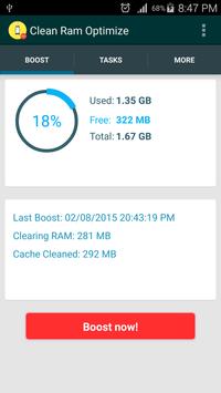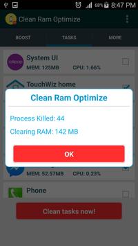 Clean Ram Optimize is an application that resolve your problem with your mobile ram it's very easily without any professional knowledge.