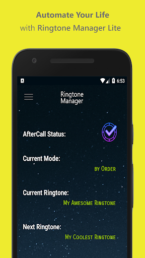 • Random mode: Ang app ay nagtatakda ng isang random na ringtone mula sa iyong listahan ng mga ringtone.Ilista.