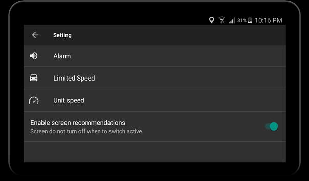 • Alarm > you can choose the tone and switch alert flashlight for limited speed