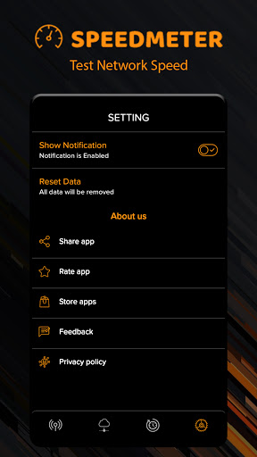 Ipinapakita ng metro ng bilis ng internet ang real-time na internet Bilis sa status bar, notification bar at nagpapakita ng dami ng data sa notification bar. Ipinapakita rin nito ang pag-download at pag-upload ng bilis sa real-time na graph.