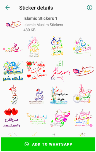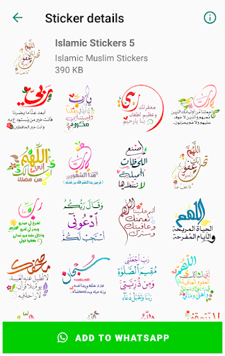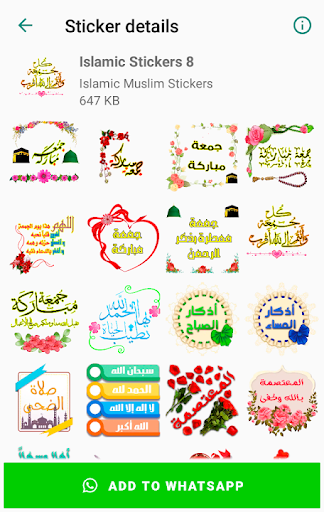 يحتوي تطبيق ملصقات واتس اب على العديد من الملصقات الإسلامية الرائعة المقسمة إلى عدة فئات مختلفة ، على سبيل المثال ، ملصقات تهنئة ليوم الجمعة وصباح الخير ، ومساء الخير ، بالإضافة إلى ملصقات واتس اب دعاء من القرآن الكريم.