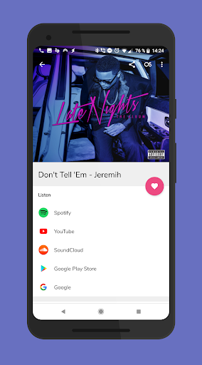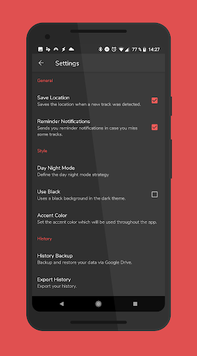 • You can open every track of your "Now Playing History" in your favorite music apps such as Spotify, Google Play Music, YouTube and many more
