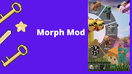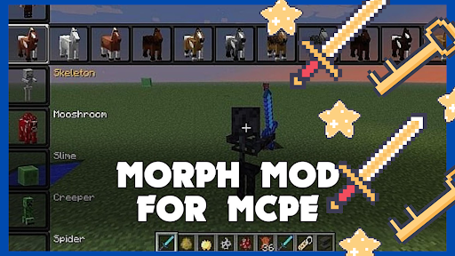 Nagbibigay ang Mace ng mga manlalaro ng parehong lakas at kahinaan.Sa pagdaragdag ng morph plus maaari kang magbago sa 30 monsters sa minecraft tulad ng axolotl, bat, bee, blaze, cat, manok, baka, gumagapang, dorwned, enderman, fox, ghast, kabayo, husk, iron golem, baboy, tupa, Shulker, Skeleton, Slime, Snow Golem, Spider, Wanderer, Vex, Villager, Witch, Wither Skeleton, Wolf, Zombie, at Zombie Pigman.Ang lahat ng mga monsters ay may buong kapangyarihan!