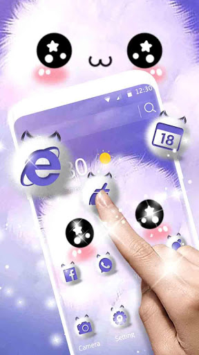 Welcome to download Cute Fluffy Kitty Theme with cuteness cloud wallpaper and purple fluffy ball icons pack !