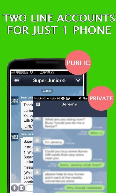 Line Messenger is a FREE messaging app, which uses your phone's Internet connection (4G/3G/2G/EDGE or Wi-Fi, as available) to let you send and receive messages, stickers, calls, photos, videos, and Voice Messages. But what if you have a Mobile phone with dual SIM cards, and want to have dual Line accounts online simultaneously? Now Dual accounts for Line can satisfy all your needs! It is the best tool for social butterflies or businessmen who using 2 Line accounts.