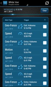 • Alerts – gives you useful event and status information, such as: geo-fence crossings, speeding, high engine RPM, low battery and vehicle motion (only when parked). You can forward each alert to any number of email addresses and to any number of cell phones as text messages.