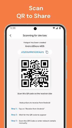 sa parehong mga aparato, bigyan ito ng mga kinakailangang pahintulot, piliin ang mga file na nais mong ilipat, at ibahagi ang mga ito.Ang app ay lilikha ng isang personal na