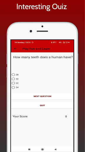 - There is a quiz section available in app which consists of various sections like general knowledge , Maths, English, Science , Environment, Sports