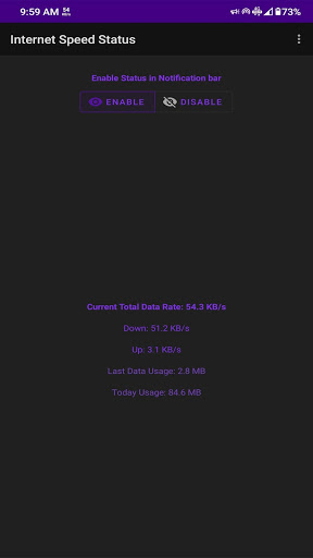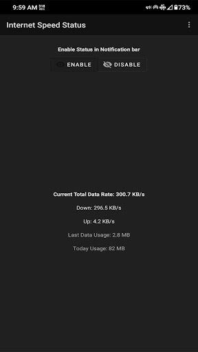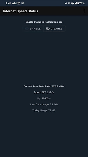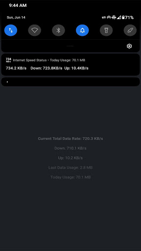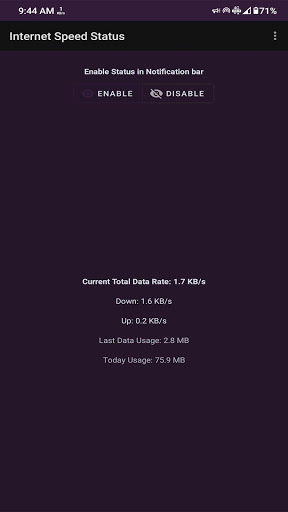 Net Speed Status displays internet speed and daily usage in Notification Bar and It will also display Last data usage in app. This helps you to check network connection speed anytime while using your device. It shows usage speed even on lockscreen in bytes per second (e.g. KB/s) speed unit.