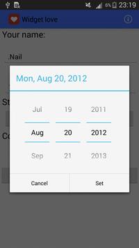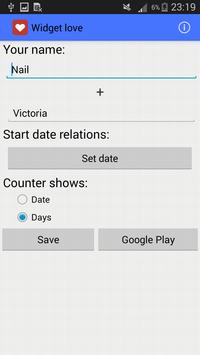 names and date of your relationship, and the widget will display on the screen the number of days together.