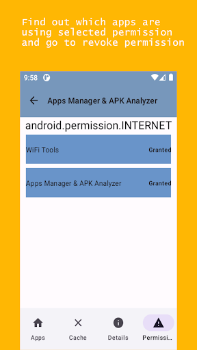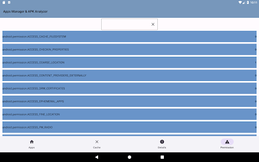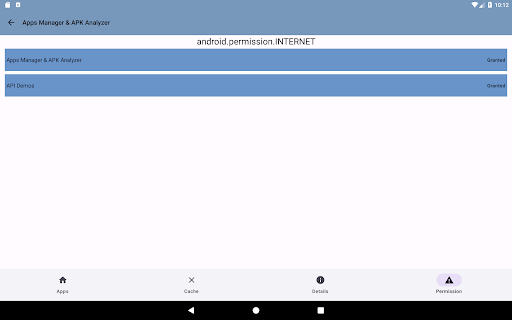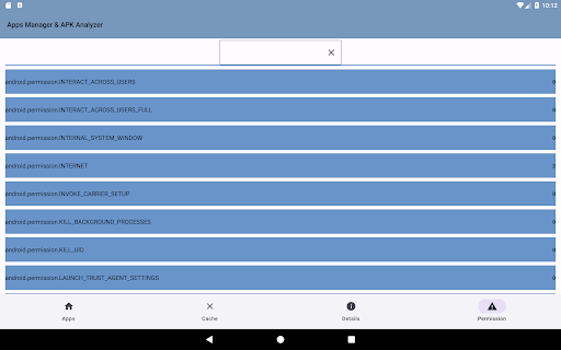 Ang app ay nangangailangan ng mga apps ng query at pahintulot ng mga istatistika na una upang makuha ang lahat ng mga app at ang pangalawa ay upang makakuha ng mga sukat ng mga app.